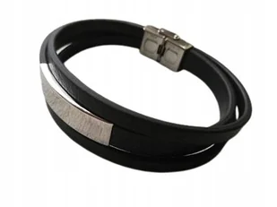 Prosta Skórzana Czarna Bransoletka Męska Stal Regu