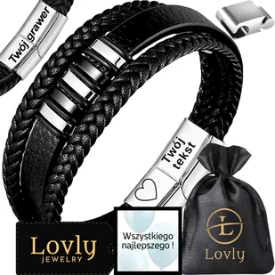 Skórzana Bransoletka Męska Stal Nierdzewna 316L Czarna Premium Z Grawerem
