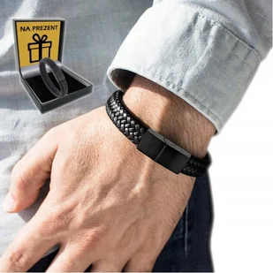 Skórzana Bransoletka Męska Tytanowa Czarna Bransoleta