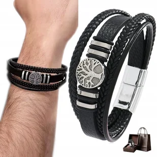Skórzana Bransoletka Pleciona Męska Premium Rzemień Skóra Naturalna