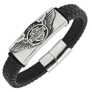 Skórzana męska bransoletka Harley Davidson Skórzana męska bransoletka Harley Davidson. Wykonana ze skóry naturalnej oraz najwyższej jakości stali chirurgicznej 316L. Bransoletka zapinana na mocne magnetyczne zapięcie. Precyzyjne wykonanie gwarantuje satysfakcję z zakupu. Stylowy gadżet dla prawdziwego mężczyzny.