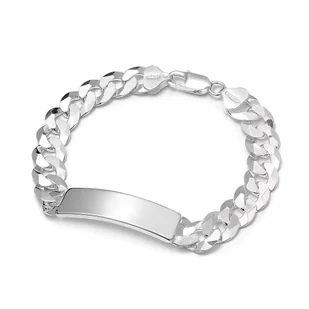 Srebrna bransoletka kieta męska masywna pancerka z blaszką 24 cm Szeroka, masywna bransoletka srebrna z blaszką o splocie pancerka i długości 24 cm została wykonana z ogromną precyzją, przez co jest produktem najwyższej jakości. Do produkcji użyto srebra najwyższej jakości próby 925. Charakteryzuje się przede wszystkim płaskimi ogniwami i oszlifowanymi brzegami. Dzięki temu splot przepięknie odbija światło, dając interesujący efekt. Pancerka to typowy, męski splot.