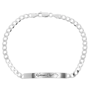 PARAMETRY: Materiał: srebro 925 Długość: 21 cm Szerokość łańcuszka: 5 mm Wymiary blaszki: 4 cm x 0,5 cm Skomponuj własny grawer Na biżuterii umieścimy Twój indywidualny grawer, który sprawi, że będzie ona wyjątkowa i niepowtarzalna! Ważne: