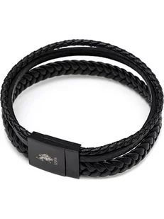 CZARNA BRANSOLETKA MĘSKA SKÓRA STAL SZLACHETNA