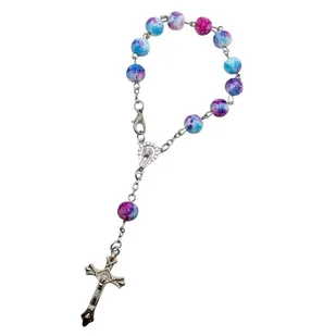 10-tka Różańca Niebiesko - Różowa. Biżuteria. Dziesiątka Różańca Różowo-Niebieska,Szkło Imitujące Kamień - ZapinanaOpis: Elegancka dziesiątka różańca wykonana z pięknych, różowo-niebieskich szklanych koralików o średnicy 8 mm,imitujących naturalny kamień Ta stylowa dziesiątka jest zapinana, co. . .