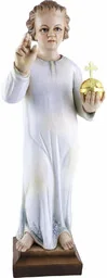 Czyż rzeźba Dzieciątko Jezus - Błogosławieństwo z Viktor-Art nie jest piękna? Jest wykonana po mistrzowsku jako stojąca figura w geście pokoju. Doskonale pokazuje wszystkie szczegóły kunsztu rzeźbiarskiego. Kup ją dzisiaj i użyj jako prezent dla siebie, kościoła, lub przyjaciół. Wymiary: (51cm x 19cm x 15cm)Materiał: drewno lipowe