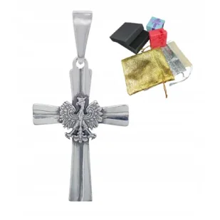 Srebrny krzyżyk z orłem – połączenie wiary, siły i polskiej dumyZawieszka w kształcie krzyża wykonana ze srebra próby 925 to niezwykle symboliczny i wyjątkowy dodatek, który łączy w sobie duchowość oraz patriotyzm. W centrum krzyża znajduje się orzeł – znak odwagi, wolności i tożsamości narodowej, będący jednym z najważniejszych symboli Polski. Jego precyzyjne odwzorowanie nadaje całości głębi i wyjątkowego charakteru.Polerowana powierzchnia srebra pięknie odbija światło, podkreślając elegancki kształt i staranne wykończenie każdego detalu. To biżuteria, która przyciąga uwagę, ale jednocześnie zachowuje szlachetną prostotę.Dlaczego warto wybrać ten krzyżyk?Wykonany z najwyższej jakości srebra próby 925 – trwały, elegancki i odporny na upływ czasu.Uniwersalny design – idealny zarówno dla mężczyzn, jak i kobiet.Wyjątkowa symbolika – doskonały wybór dla osób wierzących i ceniących polskie wartości.Świetny pomysł na prezent – elegancki symbol wiary i patriotyzmu w jednym.Zawieszka doskonale komponuje się z klasycznym srebrnym łańcuszkiem, tworząc pełen godności i znaczenia zestaw, który można nosić na co dzień lub podczas wyjątkowych okazji.Parametry: