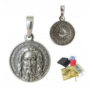 Srebrny medalik dwustronny – z wizerunkiem Oblicza Chrystusa i monogramem IHSTen niezwykły, dwustronny medalik wykonany ze srebra próby 925 łączy w sobie głęboką symbolikę, kunszt rzemiosła i elegancję. Na awersie znajduje się szczegółowo odwzorowane Oblicze Chrystusa – pełne powagi, skupienia i duchowego wyrazu. Misterny relief otacza subtelny napis modlitewny, który dodaje całości podniosłego charakteru i sprawia, że medalik nabiera jeszcze bardziej osobistego znaczenia.Rewers zdobi promienista kompozycja z klasycznym monogramem IHS, symbolizującym imię Jezus. Promienie rozchodzące się wokół tworzą efekt świetlistości, a otaczający napis podkreśla duchowy wymiar całej zawieszki. Obydwie strony wykonane zostały z dbałością o najdrobniejsze detale, dzięki czemu medalik prezentuje się wyjątkowo elegancko i szlachetnie.Solidny uchwyt umożliwia wygodne zawieszenie na ulubionym łańcuszku, a wysokiej jakości srebro nie zawiera niklu, co czyni biżuterię bezpieczną również dla wrażliwej skóry.Dlaczego warto wybrać ten medalik?Dwustronny design - dwa znaczące symbole w jednej eleganckiej formie.Srebro próby 925 bez niklu – trwałe, bezpieczne, przyjazne dla skóry.Precyzyjny relief – pięknie uwydatnione detale, które dodają głębi i charakteru.Uniwersalny i ponadczasowy – pasuje zarówno do codziennych stylizacji, jak i ważnych uroczystości.Piękny, symboliczny prezent – idealny dla osób ceniących duchowe wartości i elegancką biżuterię.Parametry: