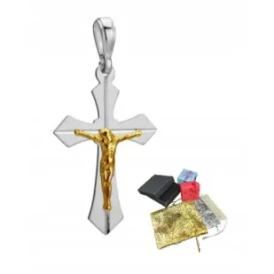 Krzyżyk srebrny próby 925 – klasyczny z pozłacanym wizerunkiem Jezusa ChrystusaElegancki i pełen duchowego znaczenia krzyżyk wykonany ze srebra próby 925 to ponadczasowy symbol wiary, nadziei i miłości.Jego klasyczna forma, połączona z delikatnie rozszerzającymi się ramionami i precyzyjnie odwzorowanym pozłacanym wizerunkiem Jezusa na krzyżu, nadaje mu wyjątkową głębię i elegancję.Lśniąca powierzchnia srebra podkreśla każdy detal, czyniąc zawieszkę niezwykle szlachetną i symboliczną.Dlaczego warto wybrać ten model?Srebro próby 925 – trwały, szlachetny materiał o pięknym połysku.Precyzyjny wizerunek Chrystusa – starannie wykonany z dbałością o najmniejsze szczegóły.Ponadczasowy design – klasyczna forma pasująca do każdego stylu.Uniwersalny charakter – odpowiedni zarówno dla kobiet, jak i mężczyzn.Idealny na prezent religijny – doskonały wybór z okazji chrztu, komunii, bierzmowania czy rocznicy.Świetnie komponuje się z łańcuszkami o splocie Pancerka, Singapur lub Figaro.Parametry: