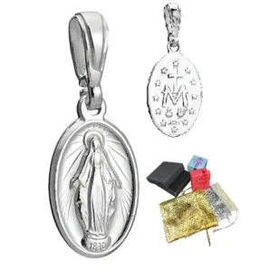 Medalik srebrny próby 925nbsp; z wizerunkiem Matki Bożej Cudownej - Symbol wiary, nadziei i opieki.Cudowny medalik wykonany ze srebra próby 925 to wyjątkowa zawieszka o głębokim znaczeniu duchowym.Z jednej strony przedstawia wizerunek Matki Bożej Niepokalanej, a na rewersie – krzyż, literę M oraz dwanaście gwiazd, będących symbolami miłości, wiary i Bożej ochrony.To ponadczasowy znak zawierzenia i duchowej bliskości, który od pokoleń towarzyszy wierzącym na całym świecie.Dlaczego warto wybrać ten model?Wysoka jakość wykonania – srebro próby 925 gwarantuje trwałość, elegancki połysk i odporność na codzienne użytkowanie.Duchowa symbolika – medalik jest znakiem wiary i zawierzenia Matce Bożej Niepokalanej.Klasyczny, ponadczasowy design – owalny kształt i precyzyjne detale nadają mu wyjątkowego charakteru.Uniwersalność – doskonale sprawdzi się jako dodatek do łańcuszka o splocie Singapur, Pancerka lub Żmijka.Wyjątkowy prezent – idealny na chrzest, komunię, bierzmowanie lub inne ważne uroczystości religijne.Parametry: