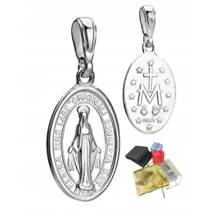 Medalik srebrny próby 925nbsp; z wizerunkiem Matki Bożej Cudownej - Symbol wiary, nadziei i opieki.Cudowny medalik wykonany ze srebra próby 925 to wyjątkowa zawieszka o głębokim znaczeniu duchowym.Z jednej strony przedstawia wizerunek Matki Bożej Niepokalanej, a na rewersie – krzyż, literę M oraz dwanaście gwiazd, będących symbolami miłości, wiary i Bożej ochrony.To ponadczasowy znak zawierzenia i duchowej bliskości, który od pokoleń towarzyszy wierzącym na całym świecie.Dlaczego warto wybrać ten model?Wysoka jakość wykonania – srebro próby 925 gwarantuje trwałość, elegancki połysk i odporność na codzienne użytkowanie.Duchowa symbolika – medalik jest znakiem wiary i zawierzenia Matce Bożej Niepokalanej.Klasyczny, ponadczasowy design – owalny kształt i precyzyjne detale nadają mu wyjątkowego charakteru.Uniwersalność – doskonale sprawdzi się jako dodatek do łańcuszka o splocie Singapur, Pancerka lub Żmijka.Wyjątkowy prezent – idealny na chrzest, komunię, bierzmowanie lub inne ważne uroczystości religijne.Parametry: