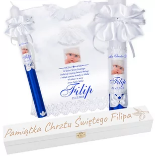 Świeca i szatka na chrzest biała z pudełkiem Pamiątka chrztu ze zdjęciem