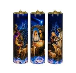 Świece, komplet liturgiczny na Boże Narodzenie , tryptyk 3 szt Świece wykonane z plastiku o wysokiej trwałości na wkłady olejowe regulowane. W tym wariancie można regulować płomień świecy w trakcie palenia płomienia. Tryptyk Bożonarodzeniowy, 3 świece. Tryptyk przedstawia narodziny Jezusa Chrystusa w stajence wraz z Maryją i Józefem i Trzema Królami. Wysokość świecy: