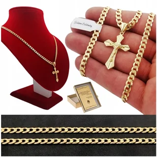 Łańcuszek Złoty Pancerka Długi + Krzyżyk Jezus 925 + Grawer Dla Faceta 65Cm