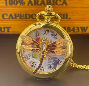 Naszyjnik łańcuszek Z Zegarem Zegarkiem Ważka Dragonfly Zegar prezent Y2K
