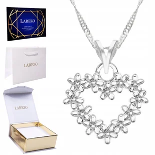 Naszyjnik Srebrny Łańcuszek 925 Serce w Kwiaty Kwiatki Serduszko z Kwiatami