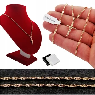 ➡️ PIĘKNY ŁAŃCUSZEK SINGAPUR+KRZYŻYK Z JEZUSEM Produkt najwyższej jakości ⭐⭐⭐⭐⭐ Zapraszamy do zapoznania się z naszą ofertą na elegancki damski pozłacany łań...