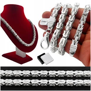 Srebro próby 925 Splot: królewski - kwadratowy (bizantyjski) Rodzaj srebra: pełne Waga: ok. 143 gramy (+/- 1 gr) Zapięcie: karabińczyk (bardzo solidny - inny niż na zdjęciu) Najwyższa jakość wykonania Produkt antyalergiczny Produkt cechowany przez Państwowy Urząd Probierczy Próba 925.
