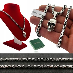 Srebrny Gruby Łańcuszek Splot Królewski + Zawieszka Czaszka / Czacha Pr 925