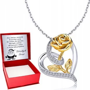 Srebrny piękny łańcuszek naszyjnik łańcuszek ze złoconą różą