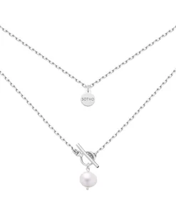 Srebrny naszyjnik z ozdobnym zapięciem i naturalna słodkowodną perłą i zawieszką z logo marki. Całość wykonana ze srebra 925. Długość łańcuszka 45 cm Szeroko...