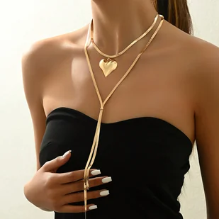 TEMU 1 szt. Elegancka damska naszyjnik z zawieszką w kształcie Y - Długi, warstwowy łańcuszek ze złotym sercem i łącznikami w kształcie litery Y,