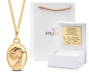 ZŁOTY MEDALIK Z ŁAŃCUSZKIEM 585 Złoty komplet, medalik z łańcuszkiem w całości wykonane ze złota próby 585. Zestaw idealnie nadaje się na takie okazje jak Ch...