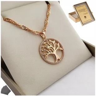 Złoty Łańcuszek Drzewko Szczęścia Naszyjnik Na Prezent Dla Kobiety + Grawer