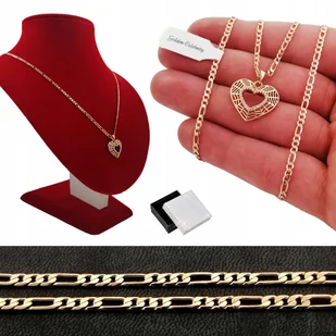 ➡️ ZŁOTY ŁAŃCUSZEK FIGARO + SERCE AŻUROWE PREZENT 18K Przedstawiamy państwu unikalny damski naszyjnik na łańcuszku figaro w komplecie ze zjawiskowym wisiorki...