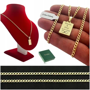 Złoty Łańcuszek Męski Pancerka + Nieśmiertelnik Z Grawerem 925/585 Prezent