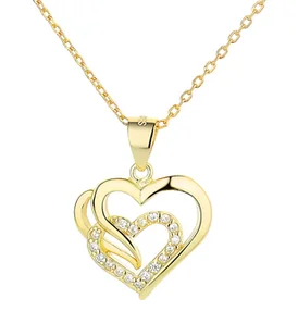 Naszyjnik przedstawia dwa splecione ze sobą serca z czego jedno wysadzane jest najwyższej jakości białymi cyrkoniamii. Idealny pomysł na prezent dla ukochanej Osoby!
