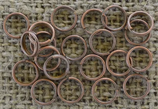 Opis: Ogniwka biżuteryjne Kolor: Miedziany Materiał: Żelazo Ilość sztuk w opakowaniu: Około 60 sztuk Wymiary: Średnica całkowita: 6mm Średnica wewnętrzna: 4,...
