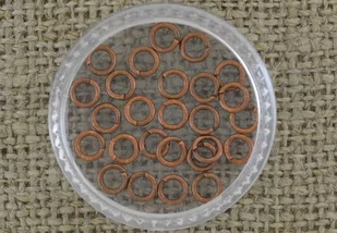 Opis: Ogniwka biżuteryjne Kolor: Miedziany Materiał: Żelazo, nie zawiera niklu Ilość sztuk w opakowaniu: Około 200 sztuk Wymiary: Średnica całkowita: 4mm Śre...