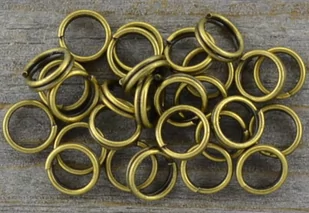 Opis: Ogniwka biżuteryjne Kolor: Brązowy Materiał: Żelazo Ilość sztuk w opakowaniu: Około 100 sztuk Wymiary: Średnica całkowita: 6mm Średnica wewnętrzna: 5mm...