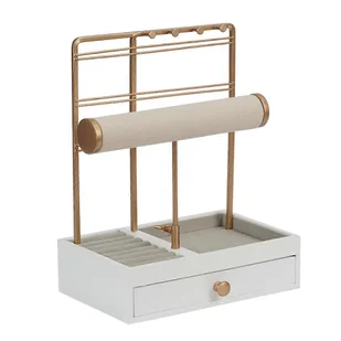 metal Kolor: / biały Zawartość Paczki: 1 x stojak na biżuterię 2 poziomy Tylko powyższa zawartość opakowania, inne produkty nie są uwzględnione. Uwaga: Odbicie światła i różne wyświetlacze mogą spowodować, że kolor przedmiotu na zdjęciu będzie nieco różnił się od rzeczywistego. Dopuszczalny błąd pomiaru wynosi +/- 1-3 cm.
