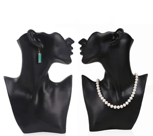 2 x popiersie jubilerskie czarne popiersie manekina jubilerskiego jako stojak na biżuterię do naszyjników, kolczyków manekin kobieca głowa / ramię do prezentacji biżuterii stojak na naszyjnik ekspozytor kolczyków