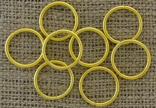 Opis: Ogniwka biżuteryjne Kolor: Złoty Materiał: Żelazo Ilość sztuk w opakowaniu: Pięć Wymiary: Średnica całkowita: 16mm Średnica wewnętrzna: 13mm Grubość: 1...