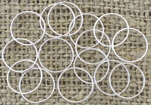 Opis: Ogniwka biżuteryjne Kolor: Srebrny Materiał: Mosiądz Ilość sztuk w opakowaniu: Około 20 sztuk Wymiary: Średnica całkowita: 10mm Średnica wewnętrzna: 9,...