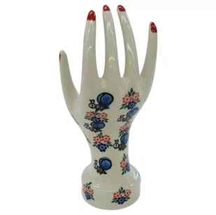Ceramiczny stojak na biżuterię duży, w kształcie powabnej, damskiej dłoni ozdobionymi podszkliwnymi wzorami – niczym przyodziany w wyjątkowo śliczną rękawiczkę, to oryginalny i nieoceniony wieszak dla kobiecych świecidełek. Rewelacyjnie wyglądający dodatek dekoracyjny a zarazem funkcjonalny kobiecej toaletki jak i łazienki. Dzięki szkliwieniu, jest bardzo łatwy w utrzymaniu czystości. Zawieszona na nim biżuteria taka jak, łańcuszki, kolczyki czy pierścionki będą zawsze pod ręką, ułożone w piękny sposób. Zarówno złota, srebrna czy platynowa biżuteria będzie prezentować się wyjątkowo na naszej ceramice bolesławieckiej.
