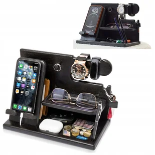 Drewniana stacja dokująca na telefon, stojak na portfel i zegarki Organizer
