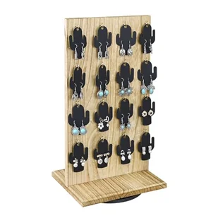 Ikee Design Drewniany obrotowy dwustronny stojak na biżuterię, obrotowy organizer z 32 haczykami do przechowywania, ekspozycja na pęku kluczy z haczykami, kolor dębu, 25 szer. x 18,5 cm gł. x wys
