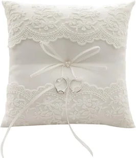 Poduszka na obrączki w kolorze kości słoniowej, ozdobiona satynową wstążką i perłą Pasek z tyłu do trzymania dla chłopca niosącego obrączki / chłopca niosące...