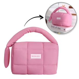 Kosmetyczka kuferek pikowana z rączkąWykonana z miękkiego, pikowanego materiału. Bardzo praktyczna i uniwersalna.Kosmetyczka w sam raz na dłuższe podróże czy wyjazdy - jest bardzo poręczna i pojemna, pomieści wszystkie niezbędne rzeczy.Posiada jedną dużą komorę zasuwaną na zamek oraz jedną małą przegródkę bez zamka w środku. Wymiary: 18,5 x 12,5 x 13 cm Materiał:Poliester Waga: 64g netto / 69g brutto