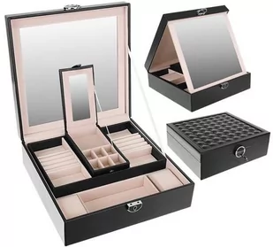 Pozwoli chronić przed zniszczeniem lub zgubieniem cenne drobiazgi, pamiątki rodzinne i nasze ulubione dodatki. Duże lustro znajdujące się na wieczku kuferka od wewnątrz ułatwi założenie biżuterii i zrobienie makijażu. Lustro jest ruchome - pociągając za tasiemkę można je ustawić w wygodnej pozycji. Po otwarciu pudełka na wyższym poziomie znajdziemy wyjmowaną kasetkę zamykaną na zatrzask. Na jej wieczku od wewnątrz znajduje się mniejsze lusterko.