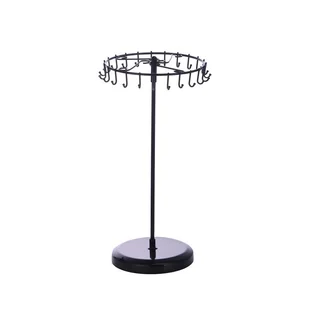 Ekspozycja na naszyjniki i biżuterię: Nasz jednopoziomowy, obrotowy ekspozytor na biżuterię dla kobiet wyposażony jest w 23 haczyki. Czarny stojak wykonany jest z metalu, a jego podstawa jest solidna i stabilna.