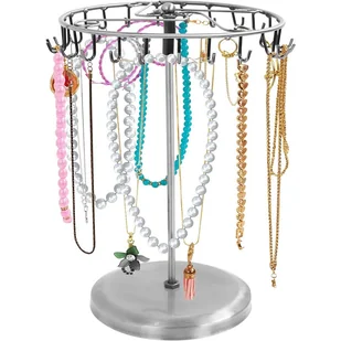 WIELOFUNKCYJNY: Ten karuzel na biżuterię można wykorzystać w sypialni i łazience. Haczyki utrzymują naszyjniki, bransoletki i pierścionki. Można na nich również zawiesić maski, breloczki i zegarki.