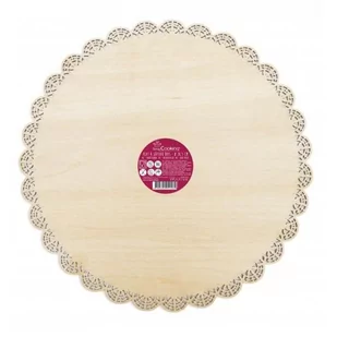 Aby zaprezentować swoje wypieki lub słodkie smakołyki, odkryj to okrągłe naczynie na ciasto z koronkowym brzegiem, w całości wykonane z drewna! Ma średnicę 2...