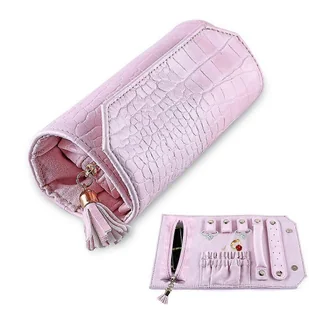 Organizer na biżuterię w rolce, lekki organizer na biżuterię, organizer podróżny na biżuterię, przenośny organizer na biżuterię (romantyczny róż)