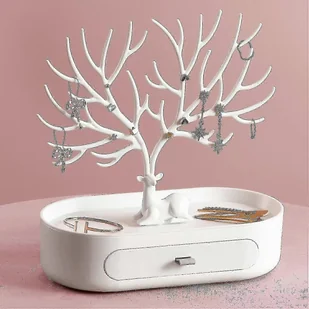 Unikalny design: piękny wzór gałęzi z haczykami na drzewa, wygodny i praktyczny design może sprostać różnym potrzebom różnych osób. Ten praktyczny design może utrzymać Twoją biżuterię w porządku. Trójwarstwowy stojak na biżuterię: drzewo na biżuterię, taca, szuflada, spełnia wszystkie rodzaje przechowywania biżuterii.