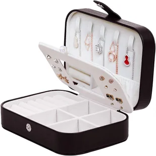 Przenośne pudełko na biżuterię z lusterkiem na naszyjniki, bransoletki, pierścionki i kolczyki, czarne, 16x11x5,5 cm